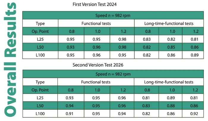 2026 wurde der Test nach ersten konstruktiven Anpassungen erneut durchgeführt. Dabei konnten die sehr guten Ergebnisse aus 2024 vollständig bestätigt werden. Eine signifikante Leistungssteigerung ist nicht zu verzeichnen. Dies ist ein klares Indiz für die bereits sehr effiziente Konstruktion der Hydraulik, die jetzt schon nahe am Idealpunkt arbeitet.