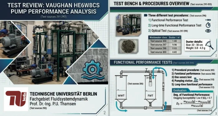 Die Vaughan-Chopperpumpe HE6W8CS-300 wurde 2024 und 2026 umfangreichen Tests zur Feststellung der Funktionstüchtigkeit für die Förderung von feststoffbeladenem Abwasser unterzogen.